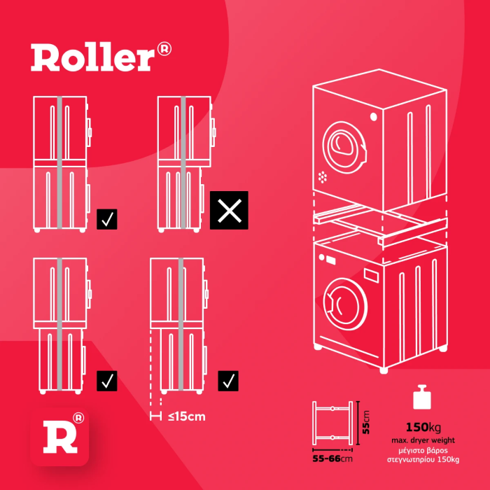 - Size: fits 60 x 60 cm washing machine/dryer.